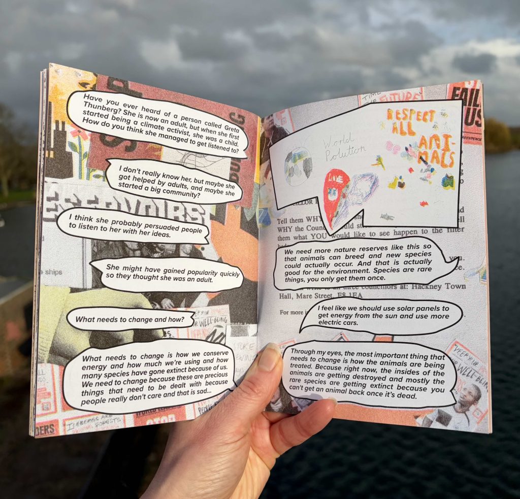 The zine features interviews that the pupils conducted with Elaine Gosnell – Save the Reservoirs, New River and Filter Beds Campaign and with fellow pupils to express their thoughts on the environment.
