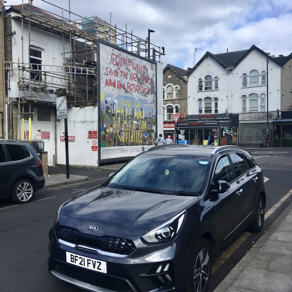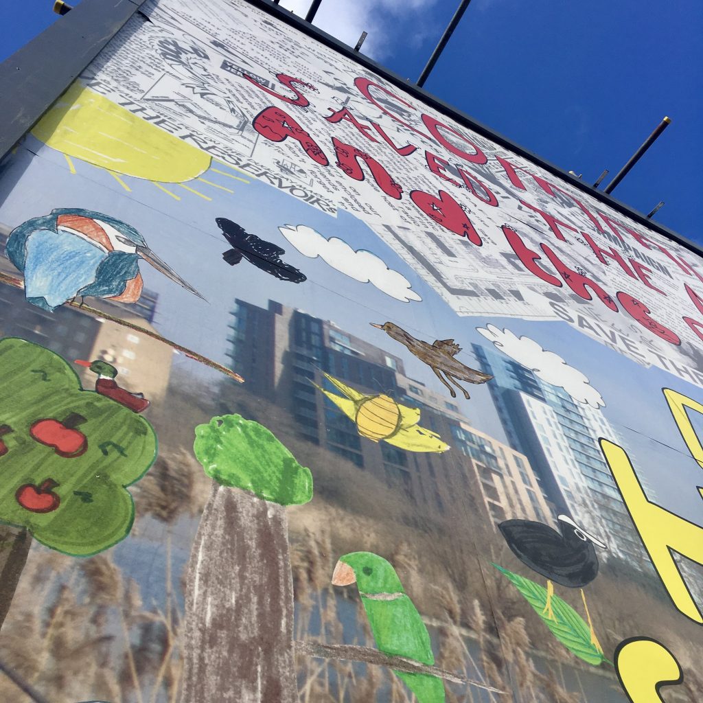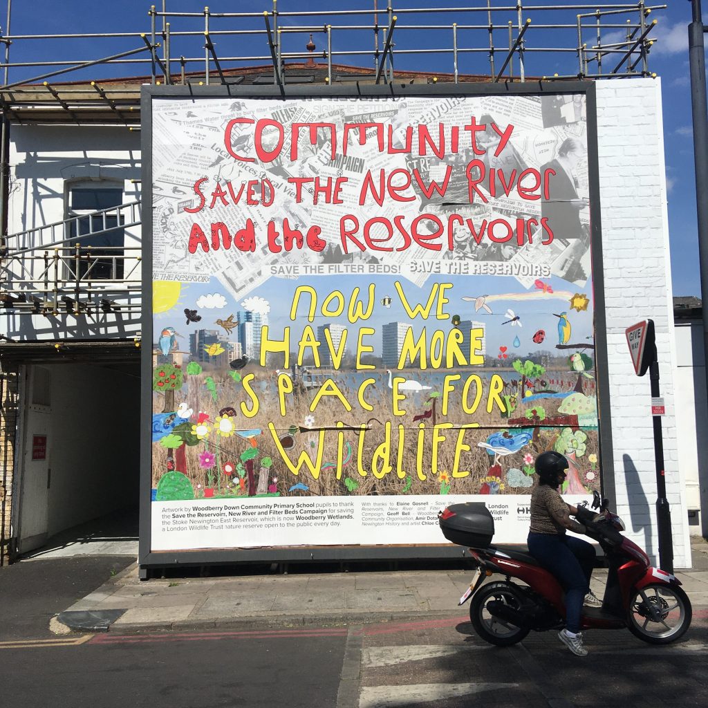 This billboard featured artwork by Woodberry Down Community Primary School pupils to thank the Save the Reservoirs, New River and Filter Beds Campaign for saving the Stoke Newington East Reservoir, which is now Woodberry Wetlands.